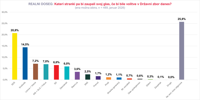 Med tistimi, ki bodo zagotovo, verjetno ali mogoče šli na volitve, je še vedno 25,8 % neopredeljenih.
