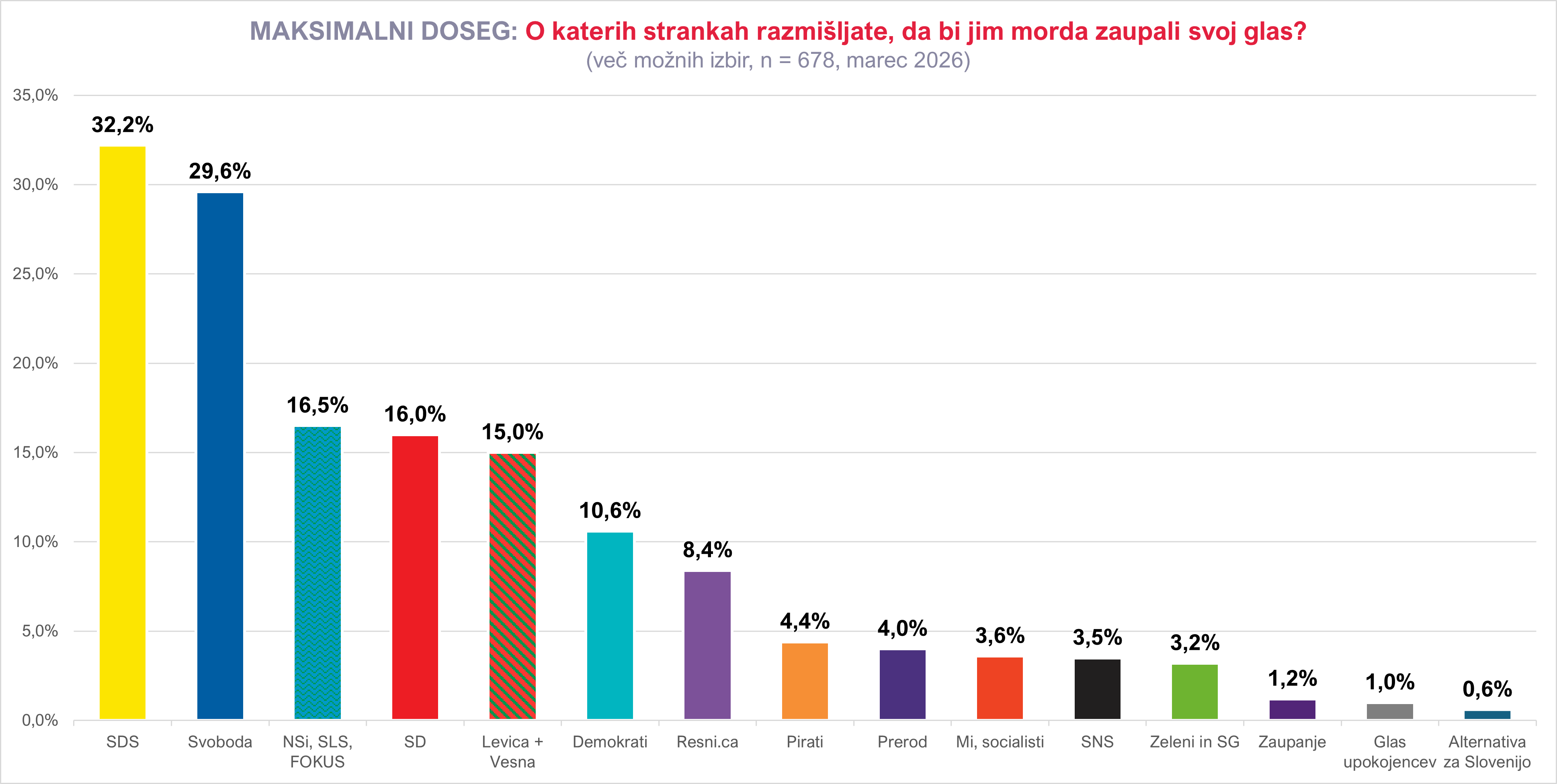 MAKSIMALNI DOSEG: O katerih strankah razmišljate, da bi jim morda zaupali svoj glas?