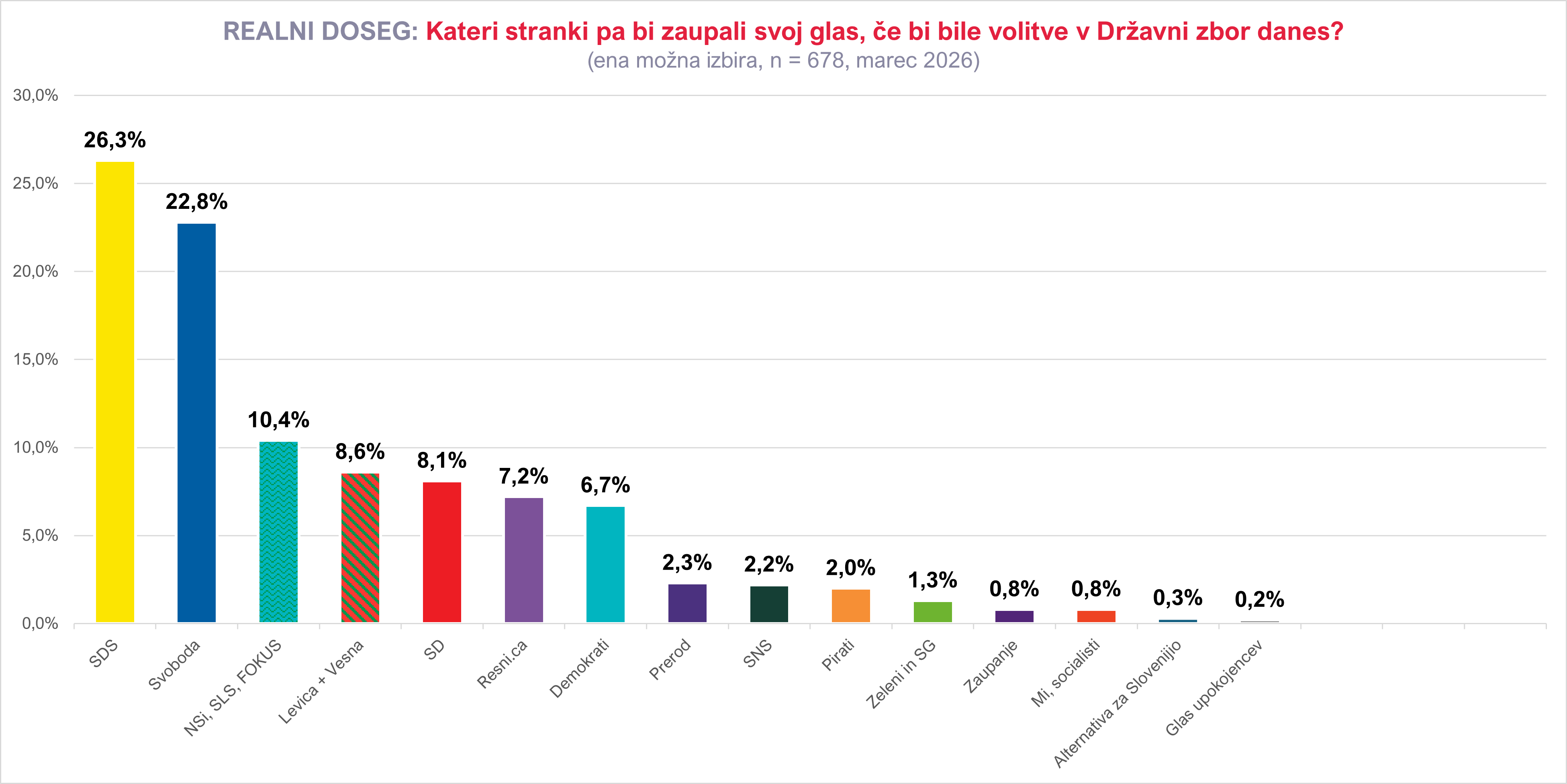 REALNI DOSEG: Kateri stranki pa bi zaupali svoj glas, če bi bile volitve v Državni zbor danes?